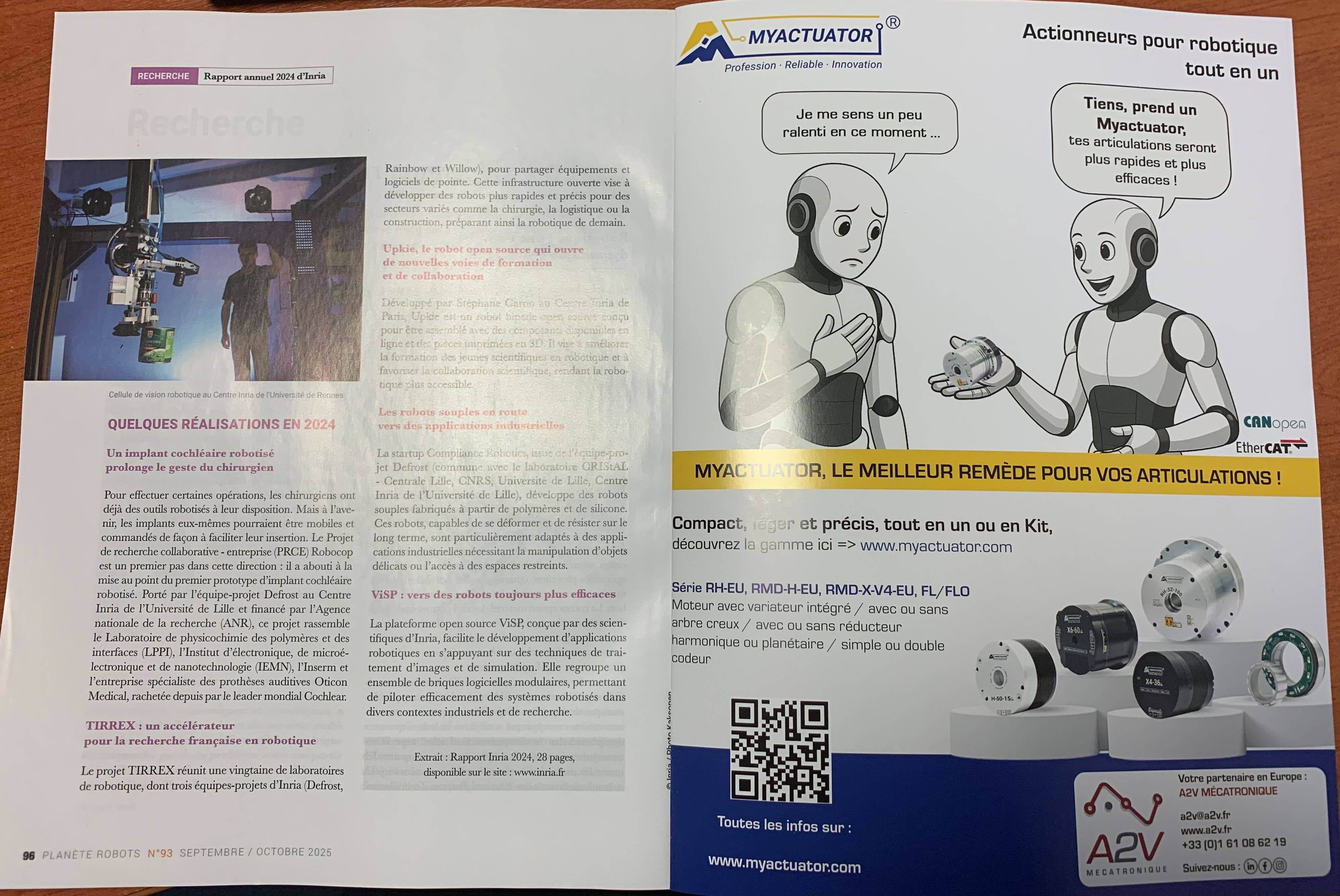 Grande nouvelle ! Nous sommes heureux d'annoncer qu'A2V Mécatronique devient le distributeur exclusif européen des produits MyActuator !